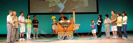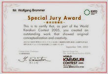 | Am Sonntag, den 18.September 2005 nahm unsere Sonderorgel ´d Waldkircher am "World-Karakuri-Contest 2005" auf dem EXPO-Gelände in Nagoya in Japan teil. Aus über 600 Bewerbungen weltweit wurden neben 11 weiteren internationalen Künstlern die Orgel von Jäger & Brommer ausgewählt um am Wettbewerb zum "Karakuri-Contest 2005" in Japan teil zu nehmen. |