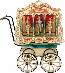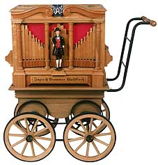 | "Waldkircher Drehorgeln" seit 1834 ein Begriff wenn es um: Drehorgel, Jahrmarktsorgel, Karusellorgel, Konzertorgel und Orgelbau überhaupt geht. Begründet durch die Waldkircher Orgelbauerfamilien Bruder und Ruth und später auch durch die Orchestrionbauer "Gebr.Weber" - deren direkter Nachfahre Orgelbaumeister Heinz Jäger ist - wurde Waldkirch zum weltweit einmaligen Zentrum für mechanische Musikautomaten und Orgelwerke. Diese Tradition führen wir mit unserer Meisterwerkstatt für Orgelbau "Jäger & Brommer" im Bereich Drehorgel: Neubau und Restaurierung - aber auch im kirchlichen Orgelbau (www.waldkircher-orgelbau.de) - fort. Von der Bauchorgel mit 20 Tonstufen und 20 feinen Holzpfeifen bis zur konzertanten Strassenorgel mit 31 Tonstufen mit mehreren Pfeifenregistern zu den größeren Tonstufensysteme umfasst unser ausgewähltes Lieferprogramm. Wir fertigen auch auf Wunsch die großen Konzertorgeln und Jahrmarktsorgeln an. Neuheiten wie die Idee der Karakuri-Orgel oder Kinderorgel zeigen, dass auch heute die Drehorgel als bezauberndes Musikinstrument jung und alt begeistert. Werden auch Sie zum Moritatensänger mit der entsprechenden Moritatenorgel oder zum Strassenmusikanten, der seine selbst entworfene und gestaltete Drehorgel spielt. Sie können bei der Planung Ihrer Drehorgel mitwirken denn: unsere Drehorgeln werden ganz handwerklich und individuell angefertigt. Das kostet nicht einmal mehr! Sie können bei uns auch Drehorgeln ausleihen: unser Drehorgelverleih bietet die Chance dass Sie für alle Festlichkeiten einen tollen Auftritt haben.Wenn Sie uns besuchen, dann können wir Ihnen auch im angegliederten Orgelbauersaal der Waldkircher Orgelstiftung viele Orgeln aus vergangener Zeit und Orgelneubauten vorstellen. Wir beraten Sie gerne und Sie können sich in Ruhe Ihre Wunschorgel bestellen. Bitte beachten Sie dass wir Lieferzeiten haben. Wir werden unser Bestes geben für Sie Ihre Drehorgel zu bauen. Kommen Sie nach Waldkirch in das Zentrum des Orgelbaus und erleben Sie die Vielfalt der Waldkircher Orgelwelt -ein Besuch bei Jäger Brommer, der Waldkircher Orgelstiftung und dem Elztalmuseum mit der grossen Ausstellung von Jahrmarktsorgeln und seltene Waldkircher Orgeln lohnt immer! |